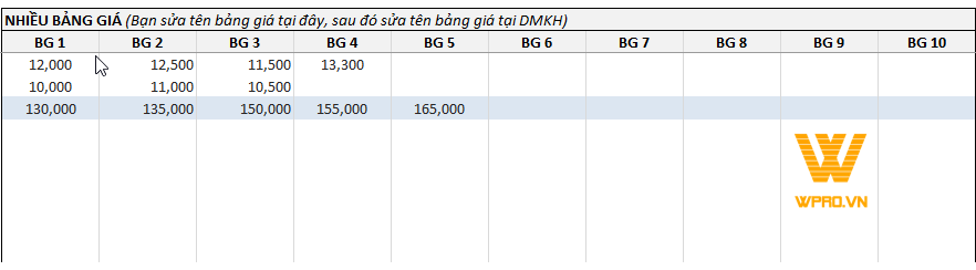 QUẢN LÝ NHIỀU BẢNG GIÁ TRÊN WPRO 2.0