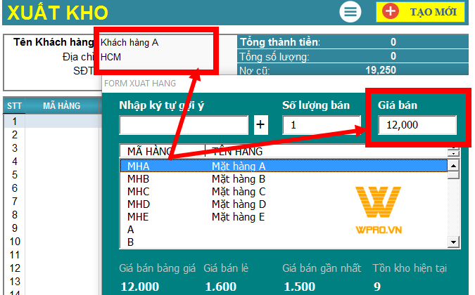 Như bạn thấy ở 2 hình dưới đây, với cùng 1 mặt hàng nhưng khi xuất cho khách hàng khác nhau thì giá bán gợi ý sẽ khác nhau.
